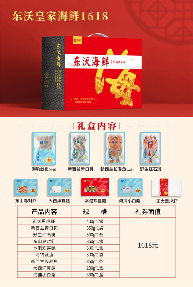 東沃海鮮盛宴禮盒魚(yú)、參、鮑、蝦滿滿一盒,將所有極具新年氛圍感、品質(zhì)高級(jí)感的海鮮,將所有對(duì)團(tuán)圓的期盼、對(duì)新年的祝福都融入其中。