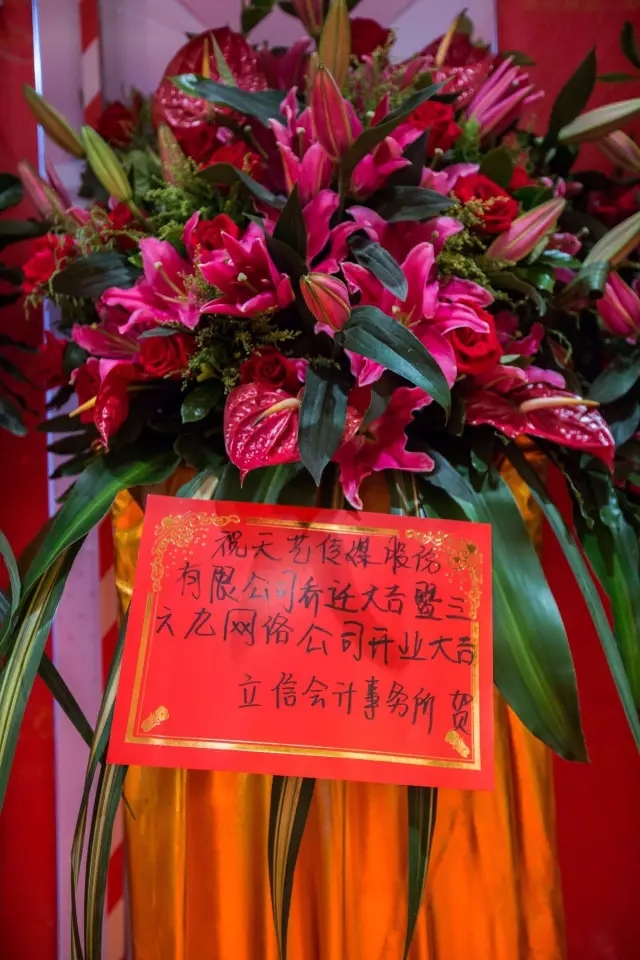 “今天是2016年8月6日,星期六,是喬遷和開業(yè)的黃道吉日,我們天藝傳媒公司選擇今天喬遷,三六九網(wǎng)絡(luò)公司選擇今天正式開業(yè),是天時(shí)。選擇悅享中心這塊風(fēng)水寶地是地利,特別是我們今天邀請(qǐng)來了這么多咱們天藝的新老朋友,是人和”,天藝傳媒董事長(zhǎng)林少敏如先生是說。